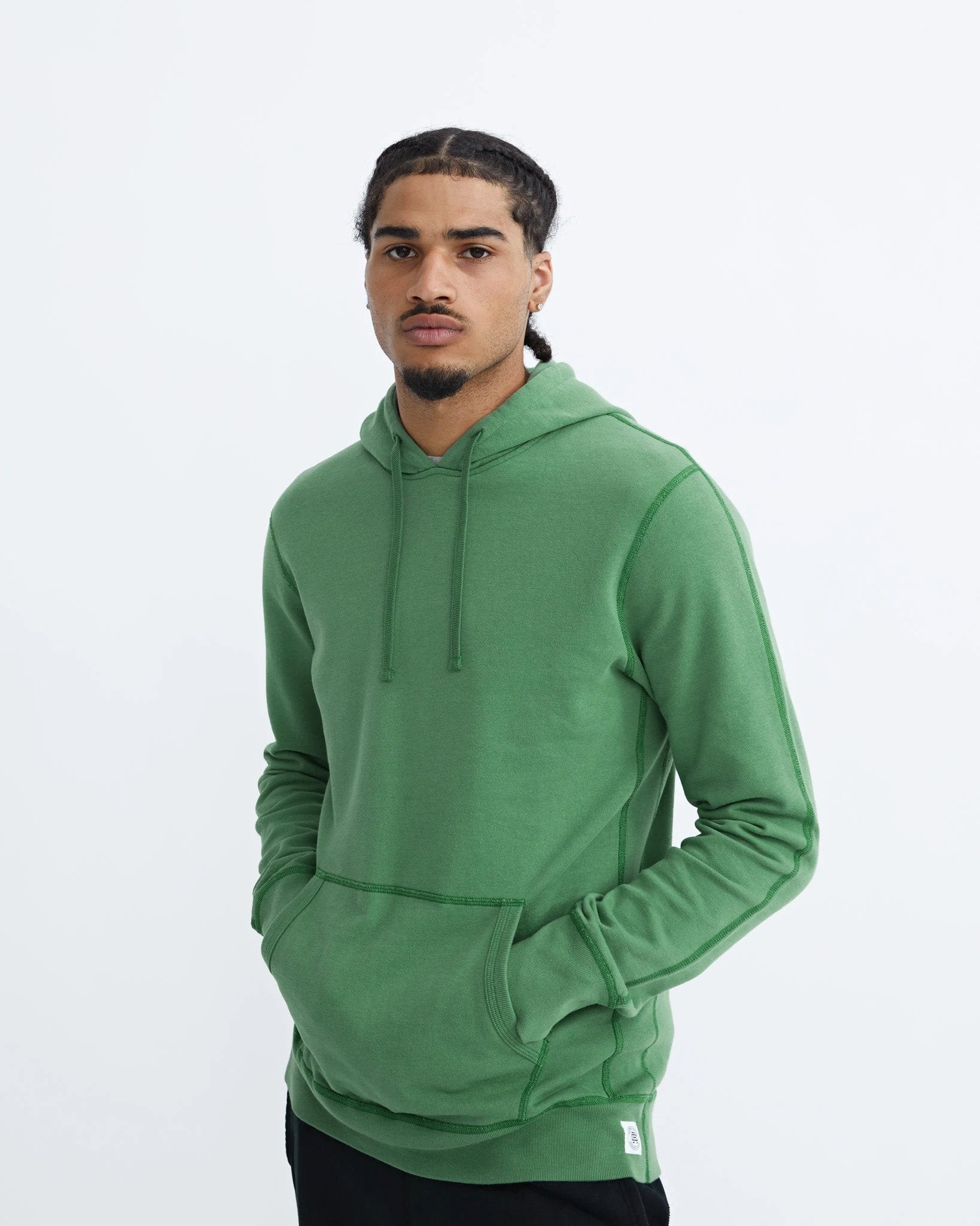 Reigning Champ design and develop signature fabrics, emphasizing rugged construction and unrivaled comfort. The process is guided by there principles: Respect the details. Master simplicity.