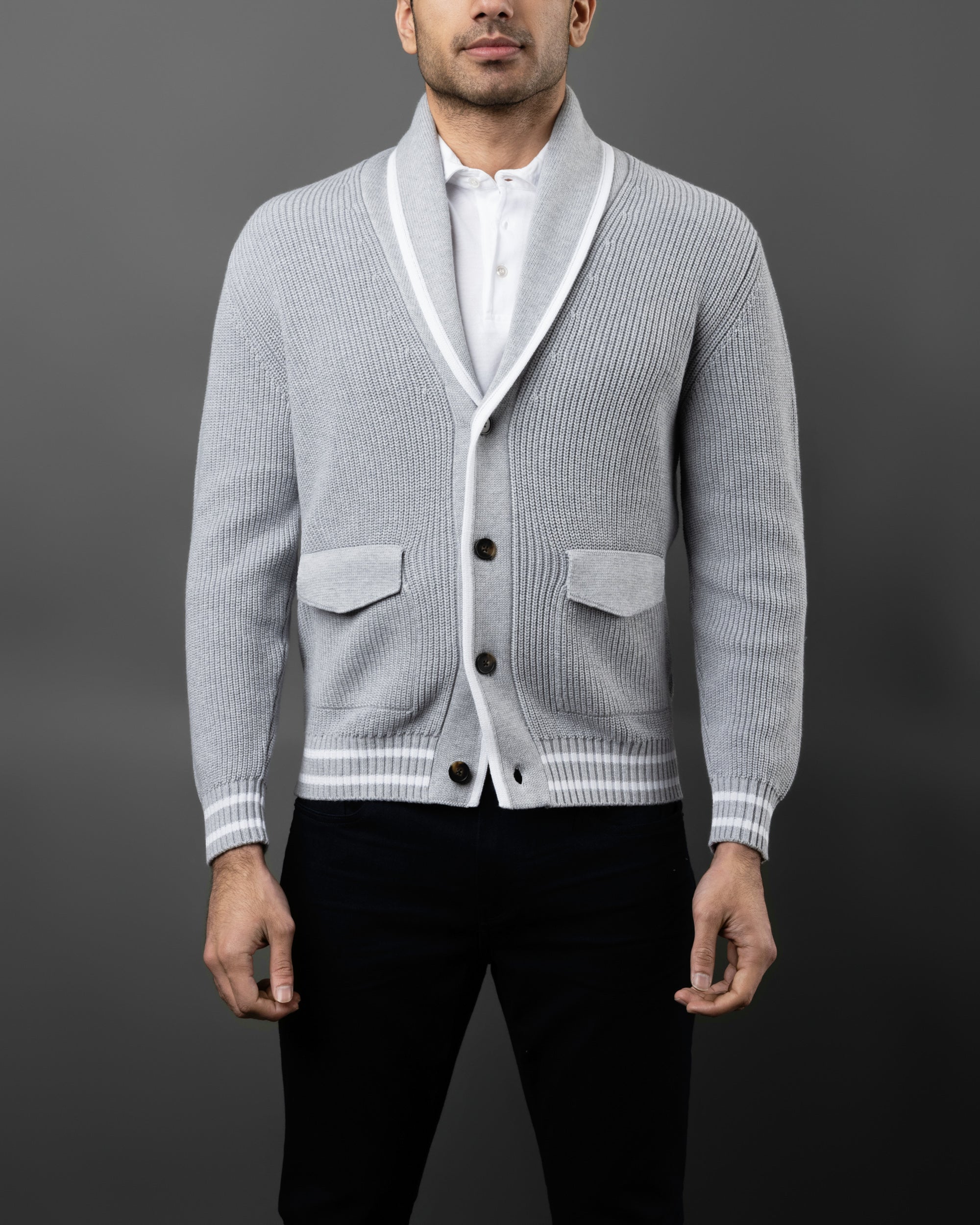 English Rib Cotton Shawl Collar Cardigan