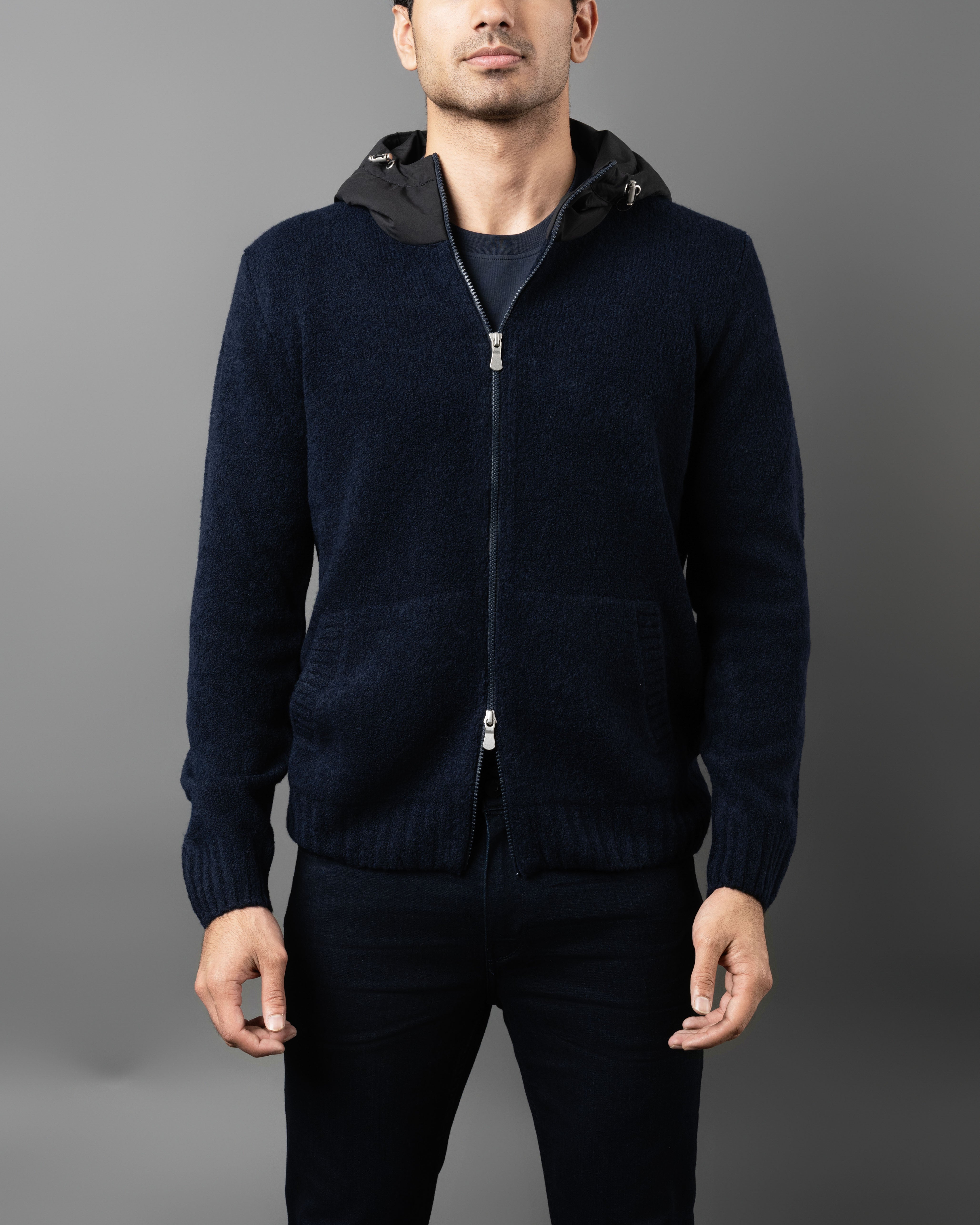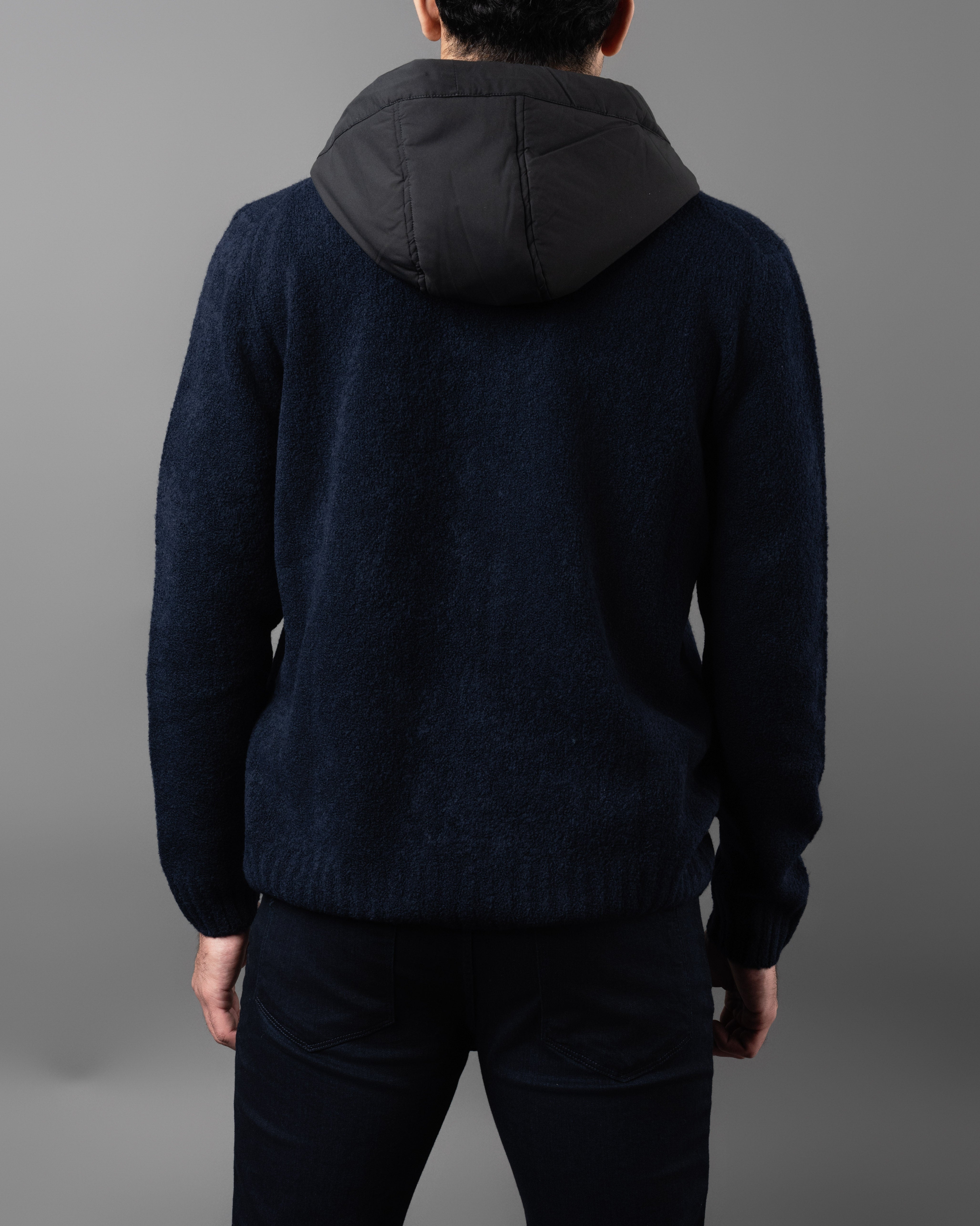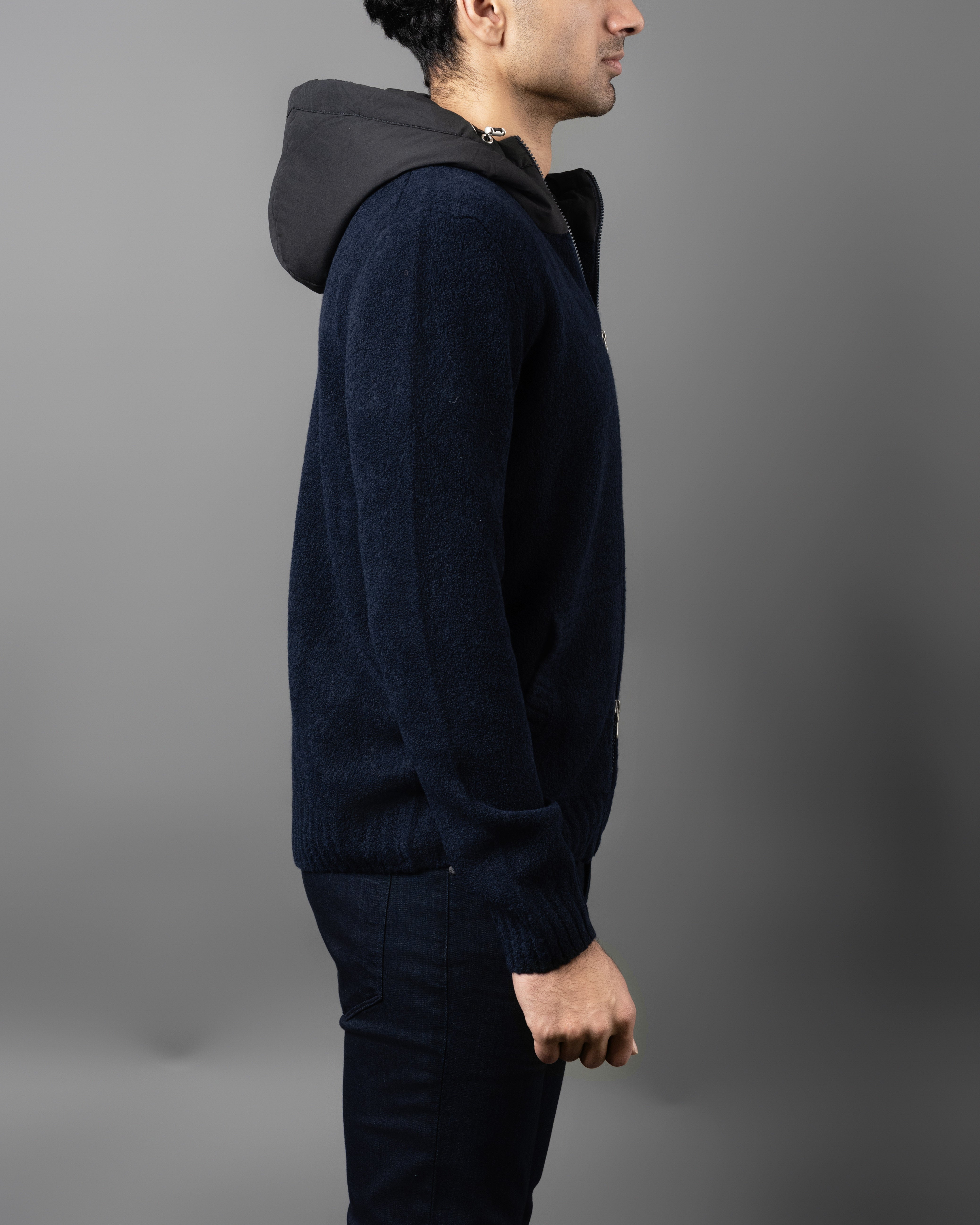 Eco Padding Hooded Boucle Full Zip Sweater